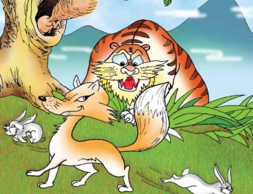 图中,狐狸站在老虎的身旁,一副趾高气扬的样子。它的眼神中透露出狡猾和得意,仿佛在说:“看,我是老虎的朋友,你们都要听我的。”